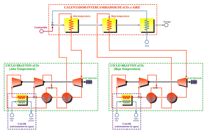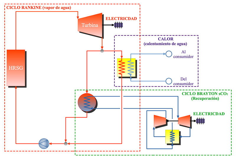 Para acomodar la tecnología de CO2 supercrítico al concepto de la cogeneración (CHP), se consideran dos enfoques con dos alcances, y la manera de llevarla a la práctica, como los más interesantes: