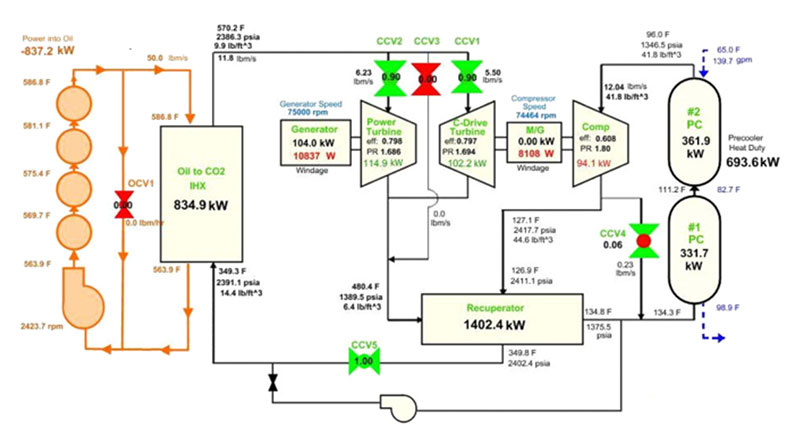 Diagrama de Flujo del EPS100 (Fuente: Timothy J. Held, Echogen Power Systems, LLC, 2019).