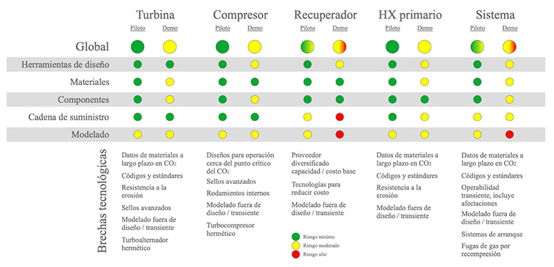 Brecha tecnológica para el diseño de los componentes de un circuito de sCO2 a 550ºC (Fuente: D. Hofer, GE 2016).