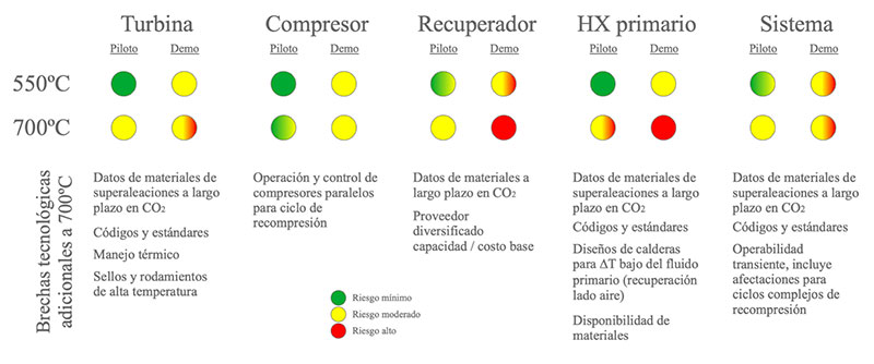 Brecha tecnológica para el diseño de los componentes de un circuito de sCO2 de 550ºC a 700ºC (Fuente: D. Hofer, GE 2016).