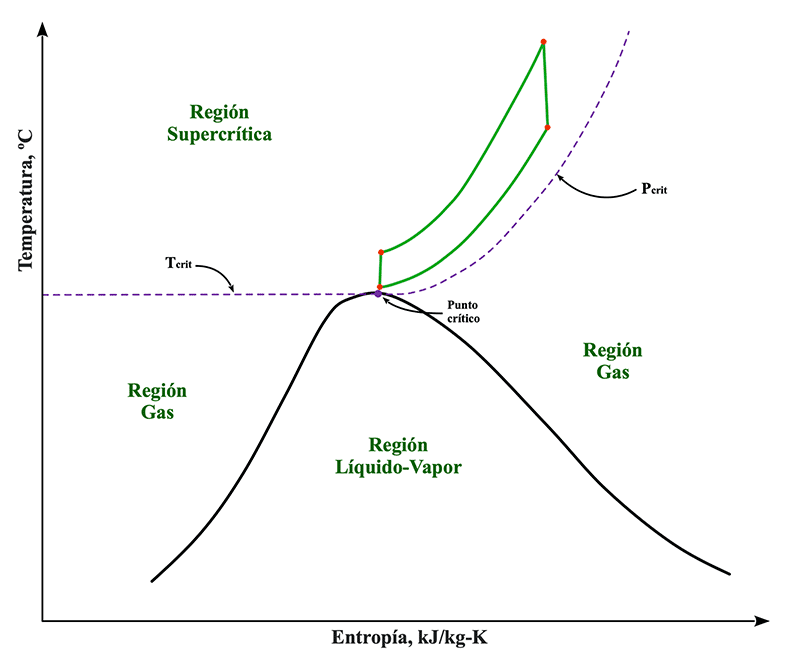 Este ciclo tiene una característica de funcionar en dos niveles de temperatura: a) un nivel inferior cerca del punto crítico y b) un nivel superior alejado del punto crítico.