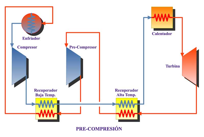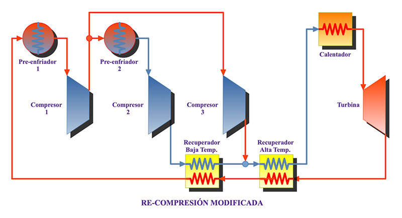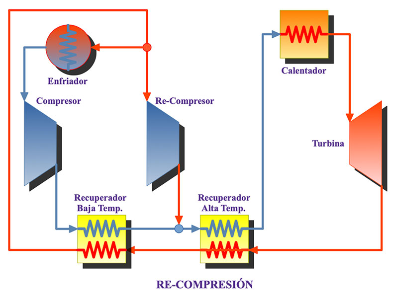 Ciclo Brayton de CO2 supercrítico (Fuente: SANDIA National Labs and Barber-Nichols Inc.)
